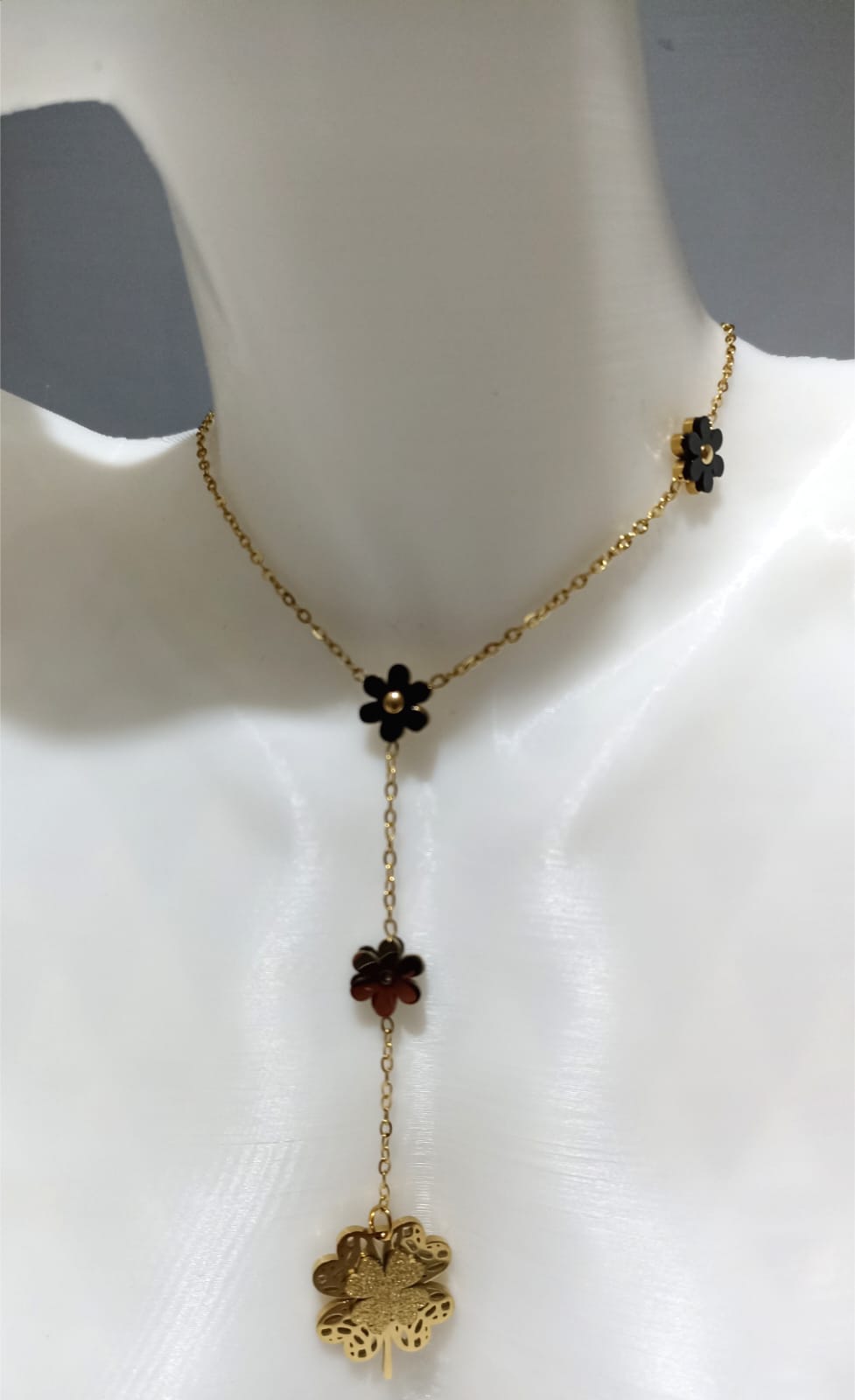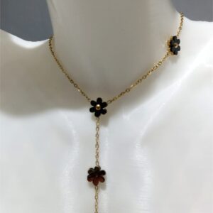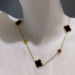 Dört Yapraklı Siyah Yapraklı Çelik Kolye