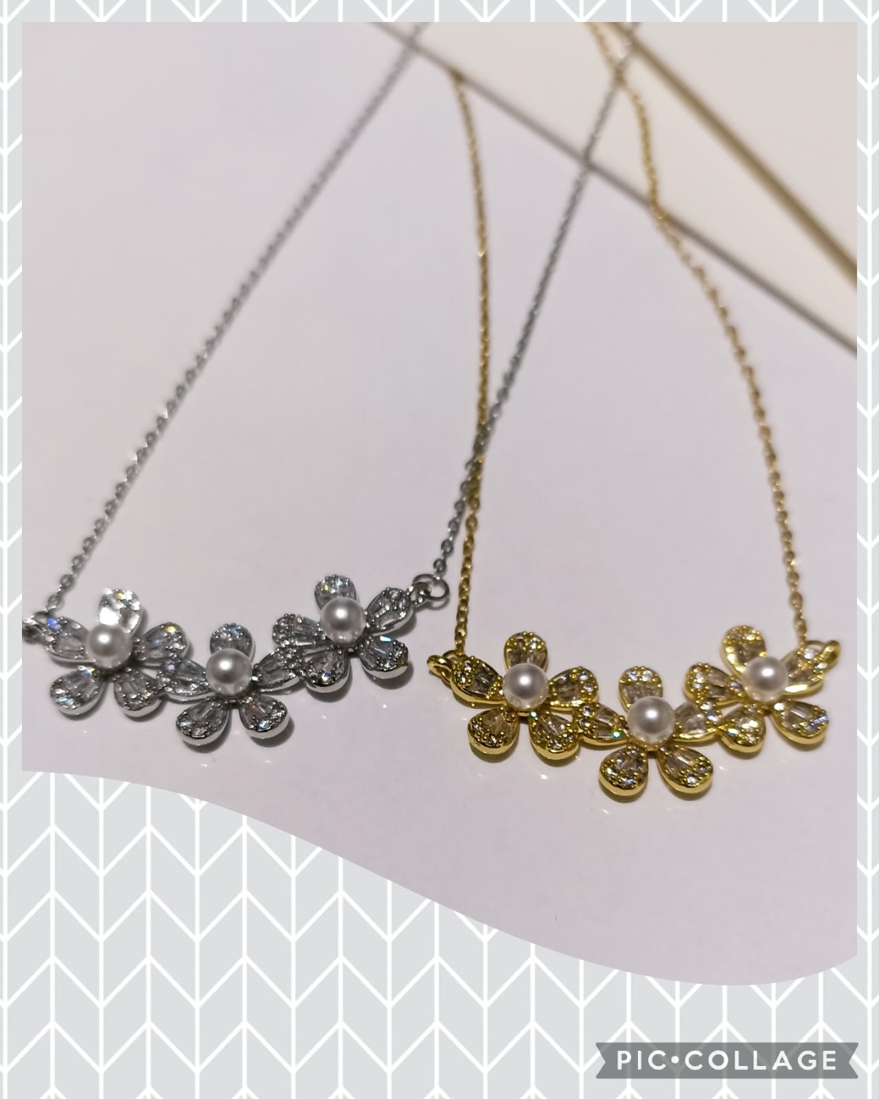 İnci Taşlı 3’lü Çiçek Motifli Çelik Kolye