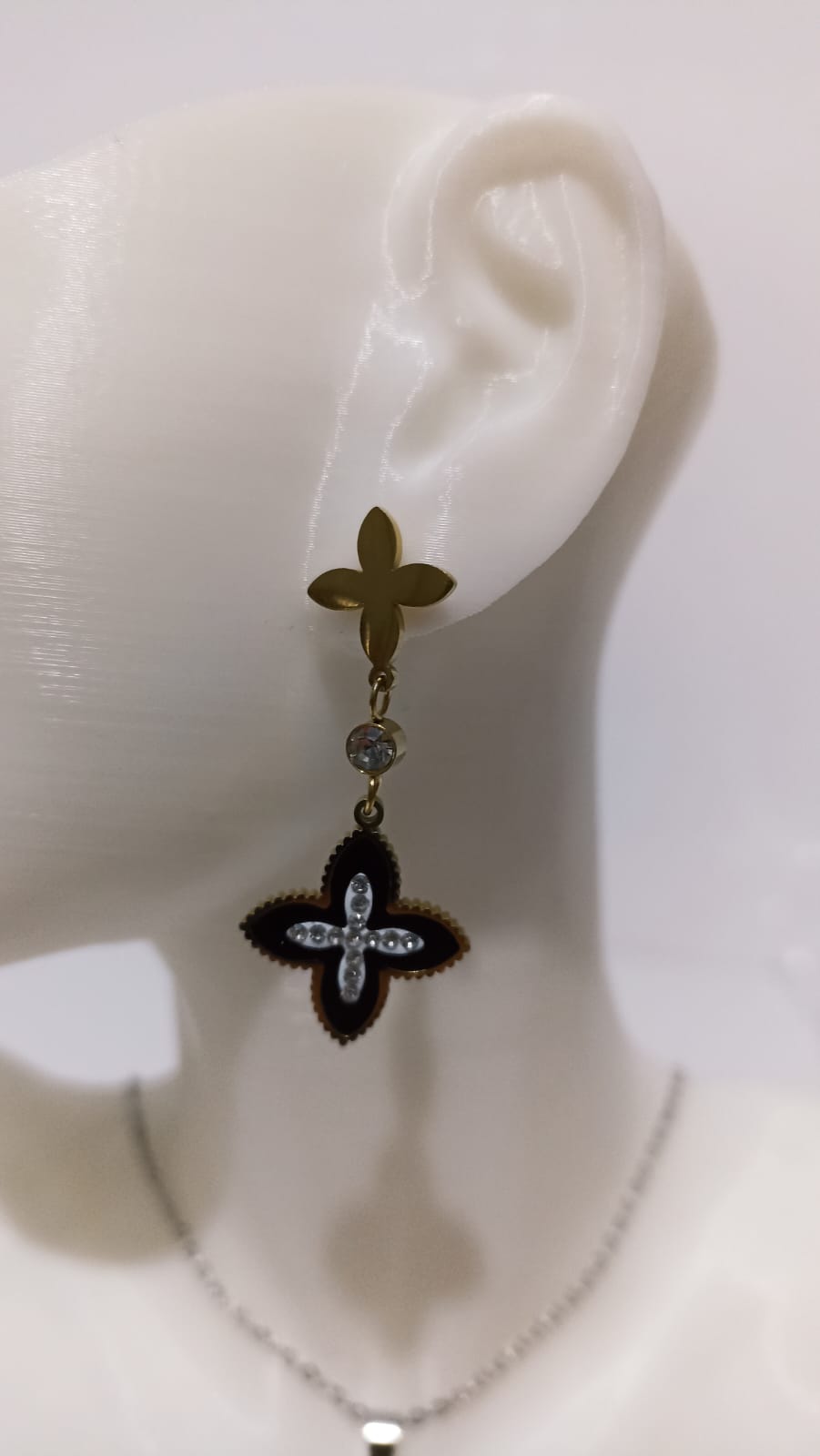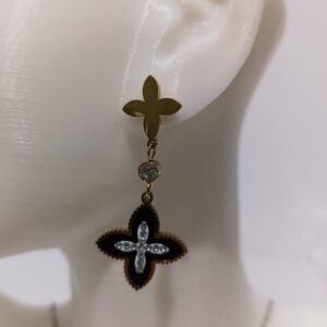 Çelik Siyah Mineli Dört Yapraklı Yonca Küpe Çift