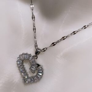 Kalp Motifli Beyaz Taşlı Çelik Kolye