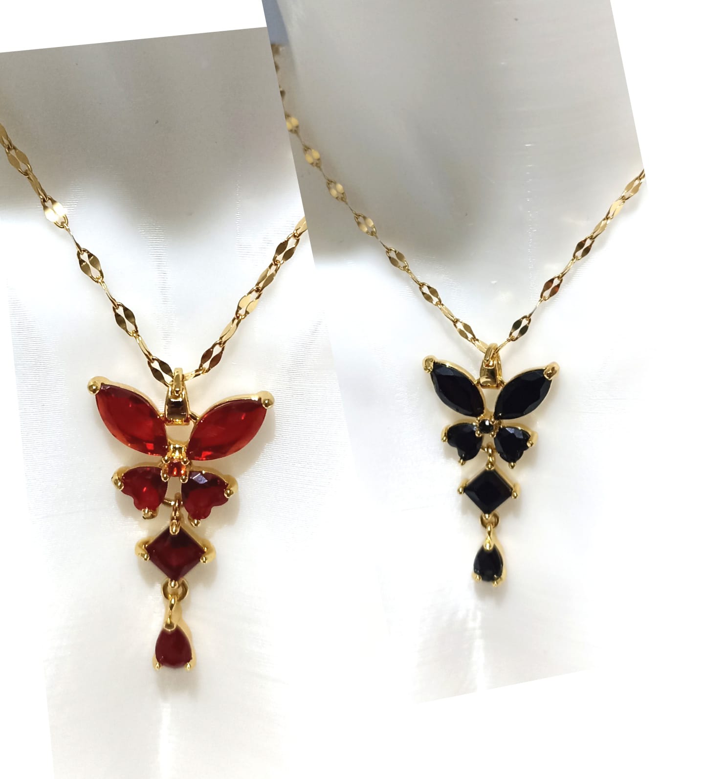 İnci Taşlı 3’lü Çiçek Motifli Çelik Kolye