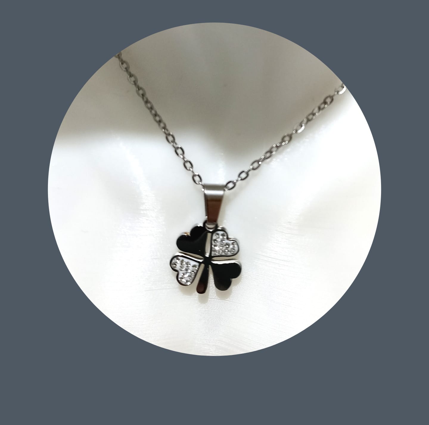 Dört Yapraklı Siyah Yapraklı Çelik Kolye